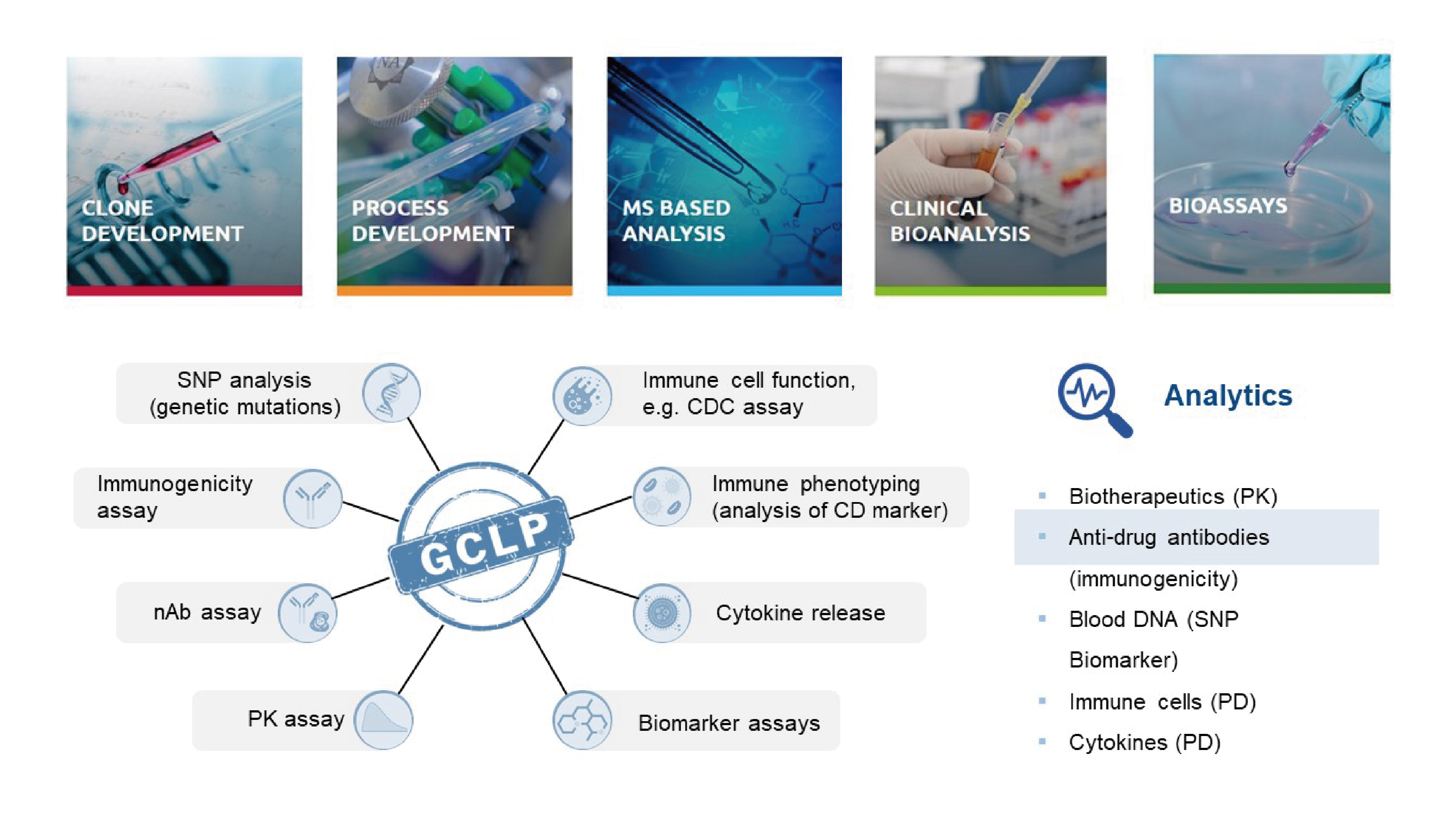 漢騰生物擁有全流程全方位的生物藥大分子分析檢測(cè)平臺(tái),完善的質(zhì)量保證體系,完全依從相關(guān)法規(guī),保證操作合規(guī)性及數(shù)據(jù)的完整性,可支持產(chǎn)品表征研究、了解分子的關(guān)鍵質(zhì)量屬性,制定可靠的質(zhì)量控制策略等。我們時(shí)刻關(guān)注最新的法規(guī)政策,不斷升級(jí)技術(shù)配備,以便更快、更好、更全地為客戶(hù)提供一站式的分析解決方案。涵蓋單抗、雙抗、重組/融合蛋白、蛋白疫苗、mRNA疫苗、AAV 載體、質(zhì)粒、重組/合成多肽、核酸藥物、ADCs等分析研究。