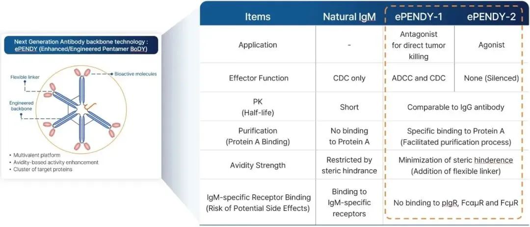 IMBiologics作為韓國唯一的IgM抗體研發(fā)公司,開發(fā)了下一代的IgM分子構型(已獲專利授權):ePENDY®平臺